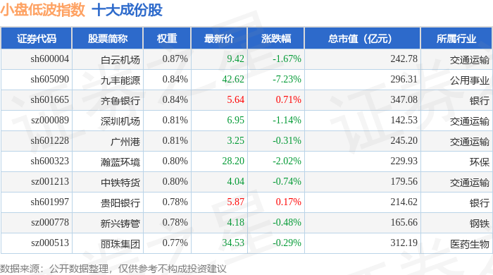 证券之星消息,12月30日,小盘低波(399408)指数报收于15204.95点,跌0.27%,成交350.19亿元,换手率1.02%。当日该指数成份股中,上涨的有39家,恒逸石化以10.02%的涨幅领涨,下跌的有102家,九丰能源以7.23%的跌幅领跌。