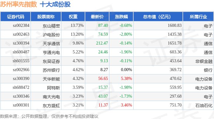 苏州率先(399410)指数十大成份股详情如下: