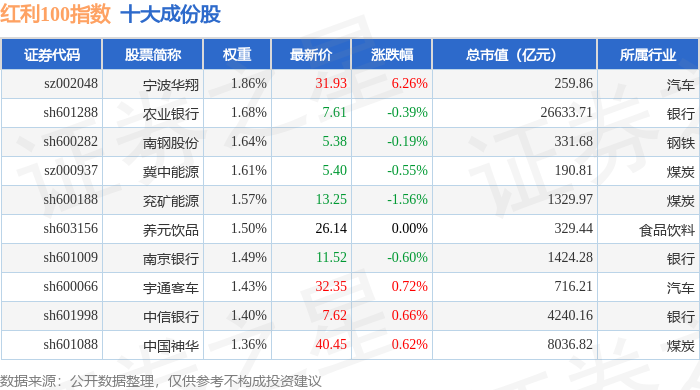 证券之星消息,12月30日,红利100(399411)指数报收于3458.64点,跌0.2%,成交436.78亿元,换手率0.27%。当日该指数成份股中,上涨的有28家,宁波华翔以6.26%的涨幅领涨,下跌的有64家,厦门国贸以5.86%的跌幅领跌。
