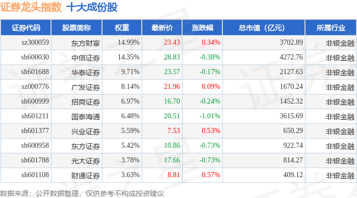 证券之星消息,12月30日,证券龙头(399437)指数报收于6841.48点,跌0.16%,成交207.25亿元,换手率0.71%。当日该指数成份股中,上涨的有8家,华林证券以3.61%的涨幅领涨,下跌的有20家,红塔证券以1.44%的跌幅领跌。