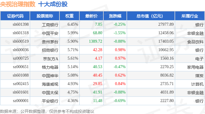 证券之星消息,12月30日,央视治理(399554)指数报收于7661.65点,跌0.29%,成交478.83亿元,换手率0.37%。当日该指数成份股中,上涨的有17家,中集集团以6.13%的涨幅领涨,下跌的有31家,烽火通信以4.3%的跌幅领跌。