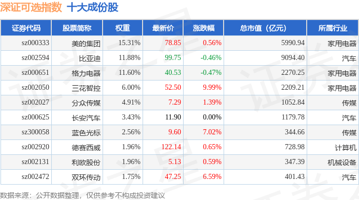 深证可选(399616)指数十大成份股详情如下: