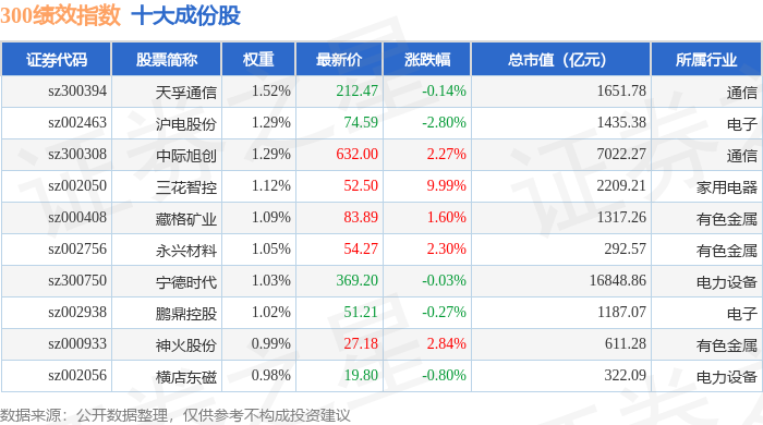 资金流向方面,300绩效(399657)指数成份股当日主力资金净流出合计75.24亿元,游资资金净流出合计15.0亿元,散户资金净流入合计90.24亿元。成份股资金流向详情见下表: