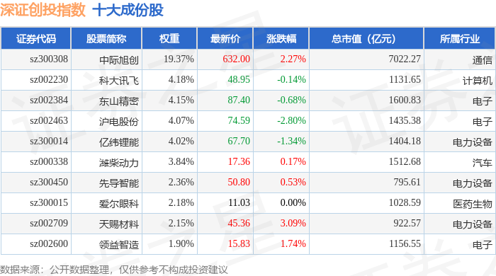证券之星消息,12月30日,深证创投(399696)指数报收于4425.27点,涨0.39%,成交1423.07亿元,换手率4.25%。当日该指数成份股中,上涨的有56家,昊志机电以18.59%的涨幅领涨,下跌的有112家,金春股份以9.46%的跌幅领跌。