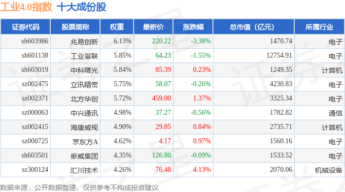 证券之星消息,12月30日,工业4.0(399803)指数报收于5388.01点,涨1.01%,成交995.34亿元,换手率2.07%。当日该指数成份股中,上涨的有59家,步科股份以20.0%的涨幅领涨,下跌的有20家,铂力特以6.22%的跌幅领跌。