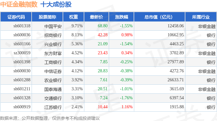 证券之星消息,12月30日,中证金融(399934)指数报收于6277.77点,跌0.44%,成交659.26亿元,换手率0.34%。当日该指数成份股中,上涨的有22家,华林证券以3.61%的涨幅领涨,下跌的有70家,海南机场以4.45%的跌幅领跌。