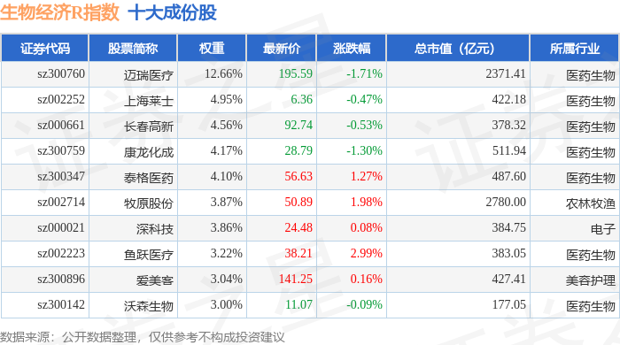 资金流向方面,生物经济R(470038)指数成份股当日主力资金净流出合计2.43亿元,游资资金净流出合计1.56亿元,散户资金净流入合计3.99亿元。成份股资金流向详情见下表: