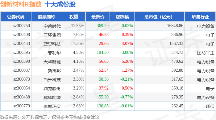 资金流向方面,创新材料R(470039)指数成份股当日主力资金净流出合计19.07亿元,游资资金净流入合计3.19亿元,散户资金净流入合计15.88亿元。成份股资金流向详情见下表: