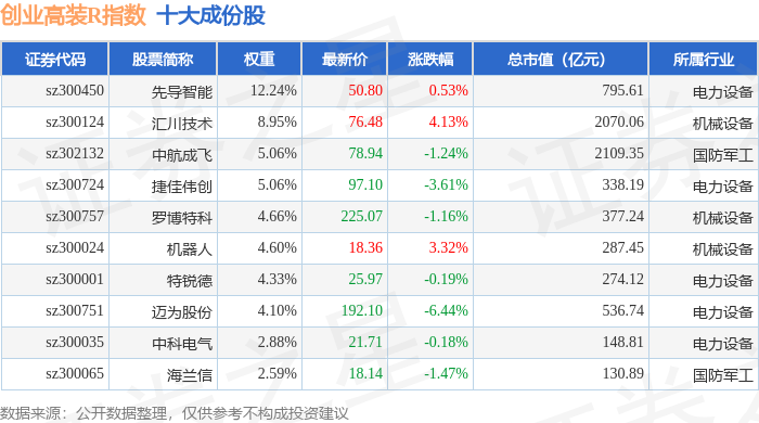 证券之星消息,12月30日,创业高装R(470040)指数报收于4588.88点,跌0.27%,成交414.6亿元,换手率5.99%。当日该指数成份股中,上涨的有19家,恒工精密以13.11%的涨幅领涨,下跌的有30家,迈为股份以6.44%的跌幅领跌。