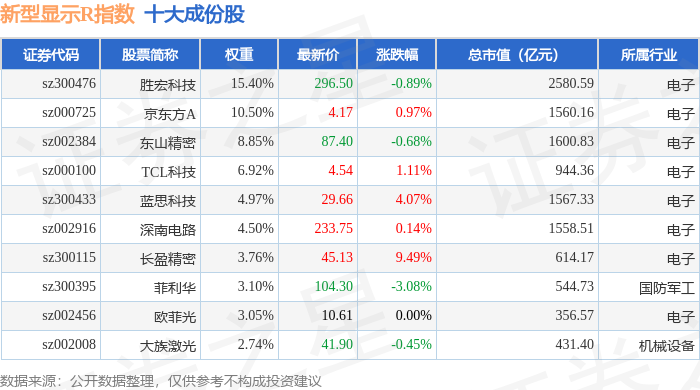 新型显示R(470048)指数十大成份股详情如下: