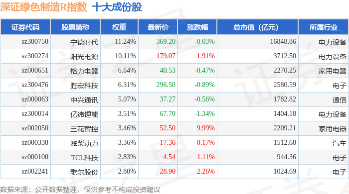深证绿色制造R(470069)指数十大成份股详情如下: