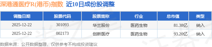 近10日内深港通医疗R(港币)(483036)指数成份股做了调整,新纳入了2只股票。
