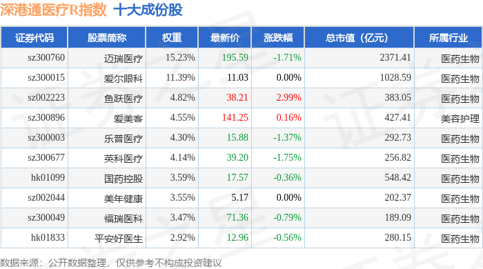 深港通医疗R(483035)指数十大成份股详情如下: