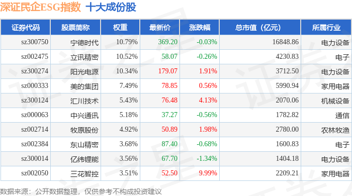 深证民企ESG(970056)指数十大成份股详情如下: