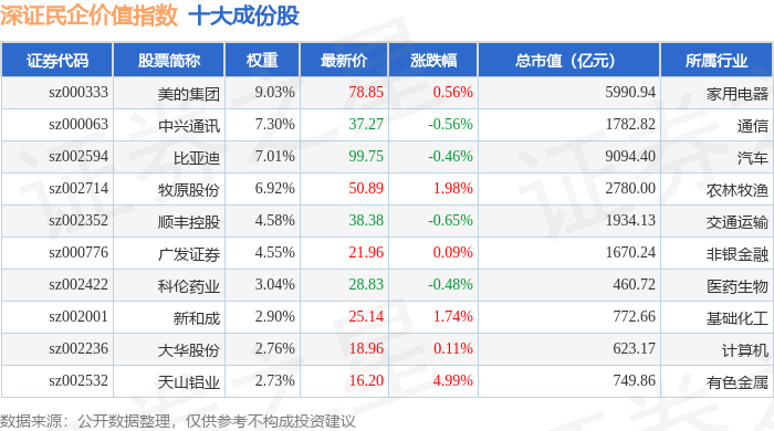 证券之星消息,12月30日,深证民企价值(970072)指数报收于3579.56点,涨0.79%,成交373.32亿元,换手率1.36%。当日该指数成份股中,上涨的有29家,恒逸石化以10.02%的涨幅领涨,下跌的有19家,捷佳伟创以3.61%的跌幅领跌。