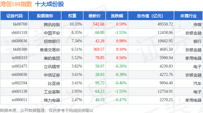 湾创100(980001)指数十大成份股详情如下: