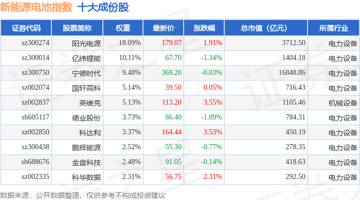 证券之星消息,12月30日,新能源电池(980027)指数报收于3453.86点,涨0.44%,成交539.34亿元,换手率2.04%。当日该指数成份股中,上涨的有18家,同飞股份以5.04%的涨幅领涨,下跌的有30家,星云股份以6.01%的跌幅领跌。