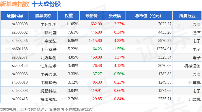 证券之星消息,12月30日,新基建(980029)指数报收于7379.28点,涨0.69%,成交1273.04亿元,换手率0.81%。当日该指数成份股中,上涨的有26家,芯原股份以4.28%的涨幅领涨,下跌的有24家,沪电股份以2.8%的跌幅领跌。