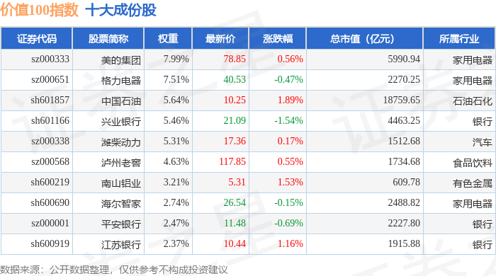 证券之星消息,12月30日,价值100(980081)指数报收于4431.66点,涨0.54%,成交442.99亿元,换手率0.59%。当日该指数成份股中,上涨的有33家,天山铝业以4.99%的涨幅领涨,下跌的有62家,常宝股份以2.17%的跌幅领跌。