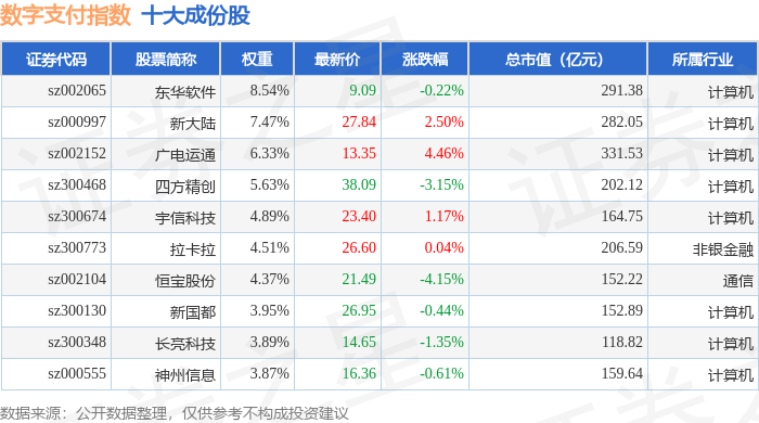 资金流向方面,数字支付(980113)指数成份股当日主力资金净流出合计13.91亿元,游资资金净流入合计4.96亿元,散户资金净流入合计8.73亿元。成份股资金流向详情见下表: