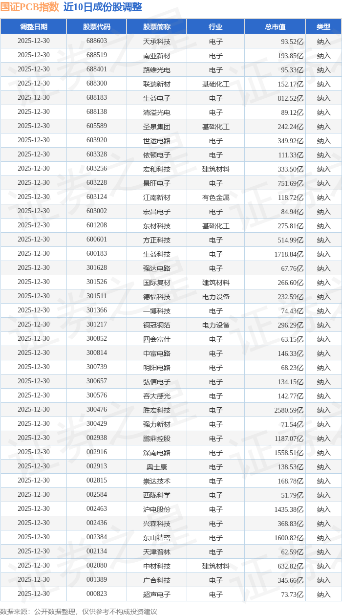 近10日内国证PCB(980115)指数成份股做了调整,新纳入了40只股票。