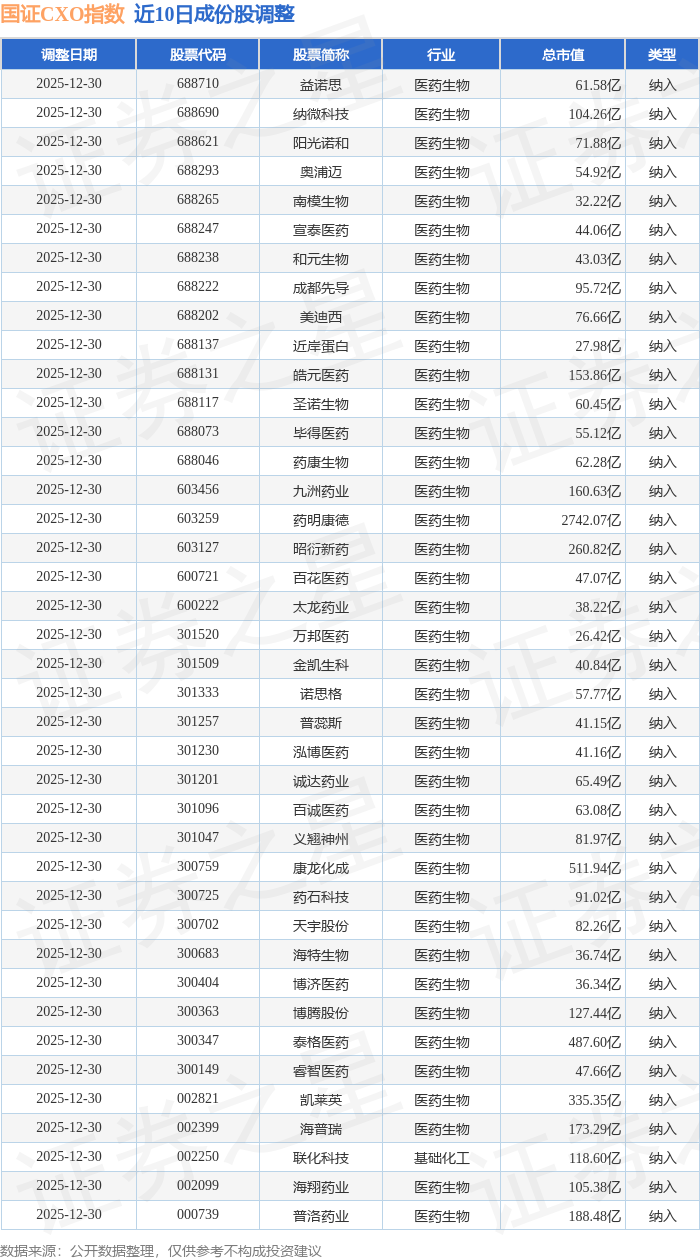近10日内国证CXO(980120)指数成份股做了调整,新纳入了40只股票。