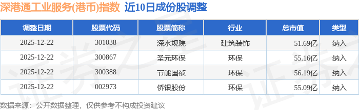 近10日内深港通工业服务(港币)(983056)指数成份股做了调整,新纳入了4只股票。