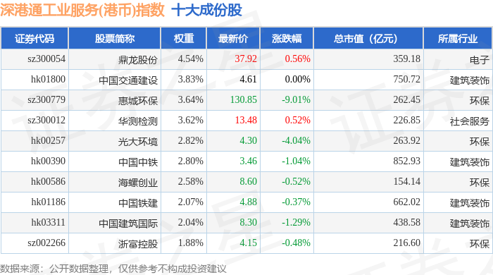 深港通工业服务(港币)(983056)指数十大成份股详情如下: