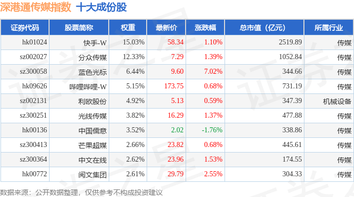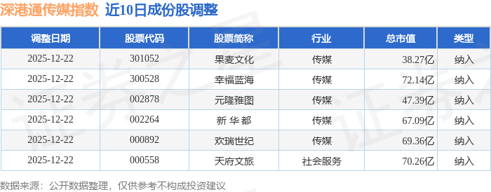 近10日内深港通传媒(983075)指数成份股做了调整,新纳入了6只股票。