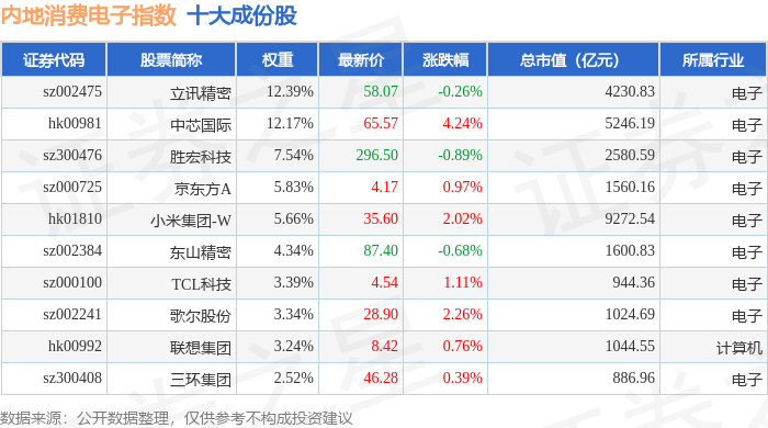 资金流向方面,内地消费电子(983105)指数成份股当日主力资金净流出合计1.1亿元,游资资金净流出合计8.68亿元,散户资金净流入合计9.78亿元。成份股资金流向详情见下表: