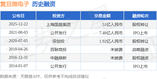 证券之星消息,根据天眼查APP于12月22日公布的信息整理,上海复旦微电子集团股份有限公司股权转让融资,交易额51亿人民币。