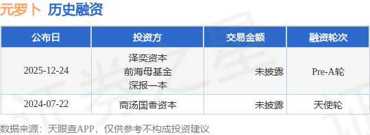 证券之星消息,根据天眼查APP于12月24日公布的信息整理,上海元罗卜智能科技有限公司Pre-A轮融资,融资额未披露,参与投资的机构包括泽奕资本,前海母基金,深报一本。