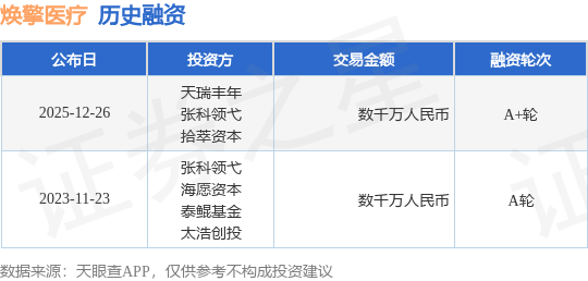 证券之星消息,根据天眼查APP于12月26日公布的信息整理,浙江焕擎医疗科技有限公司A+轮融资,融资额数千万人民币,参与投资的机构包括天瑞丰年,张科领弋,拾萃资本。