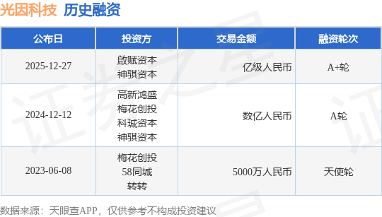证券之星消息,根据天眼查APP于12月27日公布的信息整理,深圳市光因科技有限公司A+轮融资,融资额亿级人民币,参与投资的机构包括啟赋资本,神骐资本。
