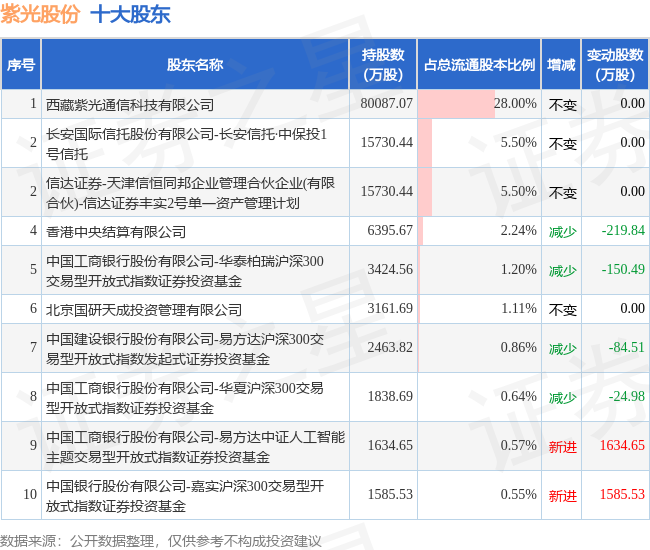 根据紫光股份2025年三季报公布的十大股东详情如下: