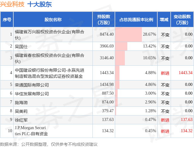 根据兴业科技2025年三季报公布的十大股东详情如下: