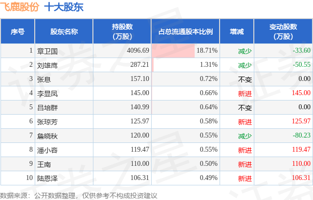 根据飞鹿股份2025年三季报公布的十大股东详情如下: