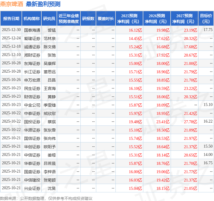 证券之星消息,2025年12月30日燕京啤酒(000729)发布公告称远信投资肖运柯 黄垲锐 奚伟天、中信建投高畅于2025年12月30日调研我司。