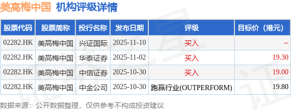 投行对该股的评级以买入为主,近90天内共有3家投行给出买入评级,近90天的目标均价为19.37港元。兴证国际最新一份研报给予美高梅中国买入评级。