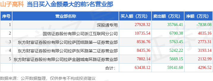 证券之星消息,沪深交易所2025年12月31日公布的交易公开信息显示,山子高科(000981)因日振幅值达到15%的前5只证券登上龙虎榜。此次是近5个交易日内第2次上榜。