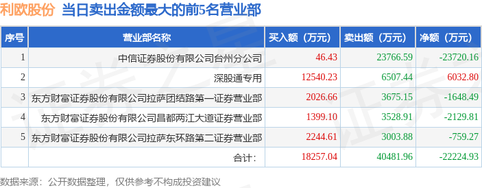 证券之星消息,沪深交易所2025年12月31日公布的交易公开信息显示,利欧股份(002131)因日涨幅偏离值达到7%的前5只证券登上龙虎榜。此次是近5个交易日内第1次上榜。