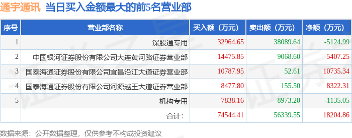 证券小知识:龙虎榜是交易所披露的竞价交易公开信息,现身龙虎榜的个股都是当日最为活跃的个股,是投资者日常重点关注的数据。交易所公布当日买入金额和卖出金额前五名的席位,其中一些席位代表特殊意义,如机构专用席位是指基金专用席位、券商自营专用席位、社保专用席位、券商理财专用席位、保险机构专用席位、保险机构租用席位、QFII专用席位等机构投资者买卖证券的专用通道和席位。深股通专用、沪股通专用为北向资金的交易席位。从龙虎榜数据可以发现和研究机构、游资和散户的资金动向。一些营业部席位经常上榜,市场知名度较高,投资者整理代表散户、游资、量化等不同资金的营业部席位。