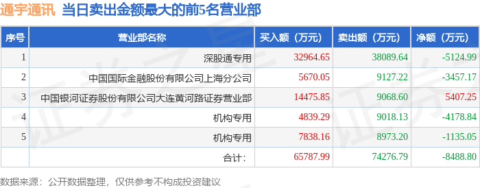 从龙虎榜公布的当日买卖数据来看,机构合计净卖出5313.89万元,北向资金合计净卖出5124.99万元。陈小群、消闲派、越王大道等知名游资榜上有名。(知名游资陈小群一般指中国银河证券股份有限公司大连黄河路证券营业部席位、知名游资消闲派一般指国泰海通证券股份有限公司宜昌沿江大道证券营业部席位、知名游资越王大道一般指国泰海通证券股份有限公司河源越王大道证券营业部席位、知名游资陈小群一般指中国银河证券股份有限公司大连黄河路证券营业部席位,根据市场资料整理,仅供参考)