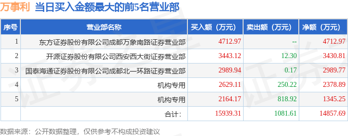 证券小知识:龙虎榜是交易所披露的竞价交易公开信息,现身龙虎榜的个股都是当日最为活跃的个股,是投资者日常重点关注的数据。交易所公布当日买入金额和卖出金额前五名的席位,其中一些席位代表特殊意义,如机构专用席位是指基金专用席位、券商自营专用席位、社保专用席位、券商理财专用席位、保险机构专用席位、保险机构租用席位、QFII专用席位等机构投资者买卖证券的专用通道和席位。深股通专用、沪股通专用为北向资金的交易席位。从龙虎榜数据可以发现和研究机构、游资和散户的资金动向。一些营业部席位经常上榜,市场知名度较高,投资者整理代表散户、游资、量化等不同资金的营业部席位。