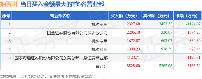 证券之星消息,沪深交易所2025年12月31日公布的交易公开信息显示,纳百川(301667)因日换手率达到30%的前5只证券登上龙虎榜。此次是近5个交易日内第2次上榜。