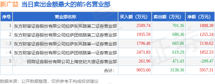 证券之星消息,沪深交易所2025年12月31日公布的交易公开信息显示,新广益(301687)因无价格涨跌幅限制的证券登上龙虎榜。此次是近5个交易日内第1次上榜。