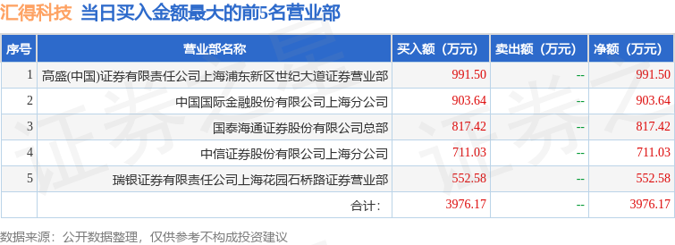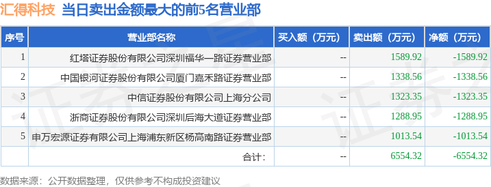 证券之星消息,沪深交易所2025年12月31日公布的交易公开信息显示,汇得科技(603192)因有价格涨跌幅限制的日收盘价格跌幅偏离值达到7%的前五只证券登上龙虎榜。此次是近5个交易日内第2次上榜。
