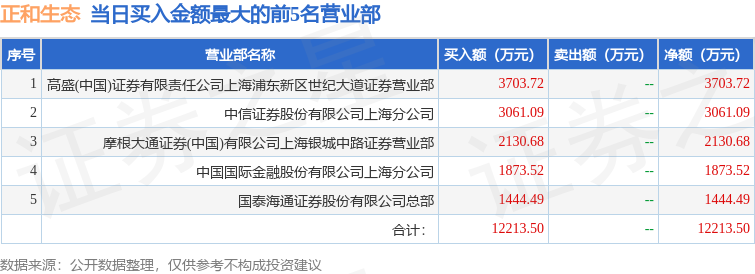 证券之星消息,沪深交易所2025年12月31日公布的交易公开信息显示,正和生态(605069)因有价格涨跌幅限制的日换手率达到20%的前五只证券登上龙虎榜。此次是近5个交易日内第3次上榜。