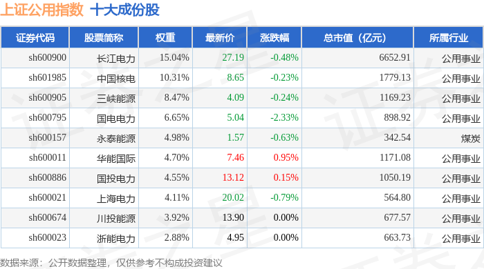 上证公用(000041)指数十大成份股详情如下: