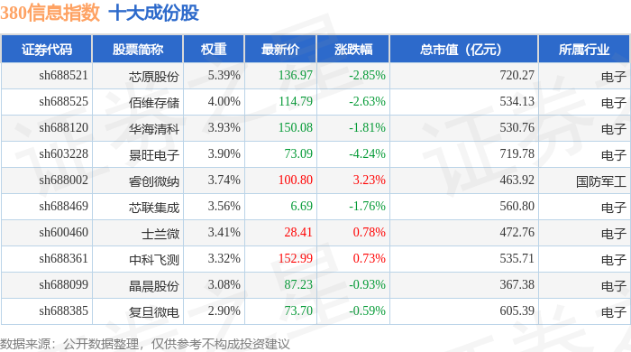 380信息(000111)指数十大成份股详情如下:
